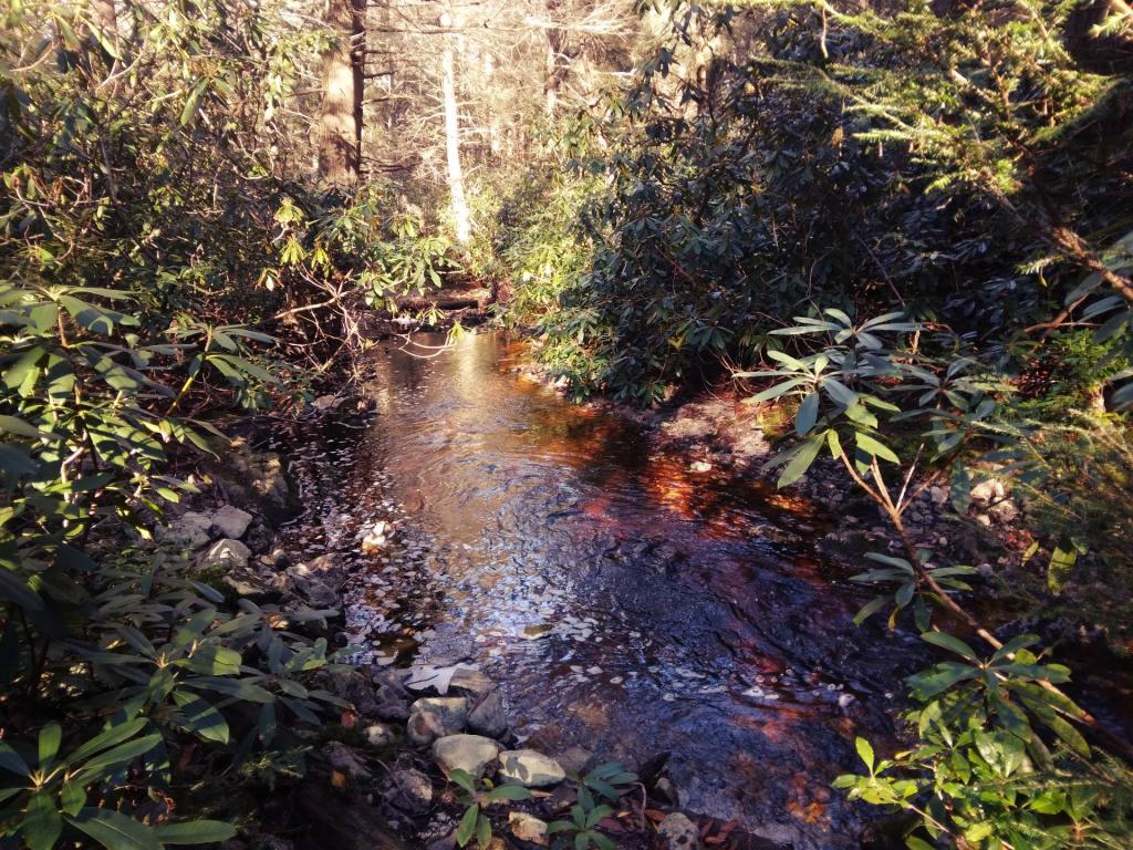 Quite the name for a stream, probably gets it's name from the gurgling roar of the stream off of Canaan Mountain and the way Great Laurel dim down the sound to make it sound a bit like an engine.