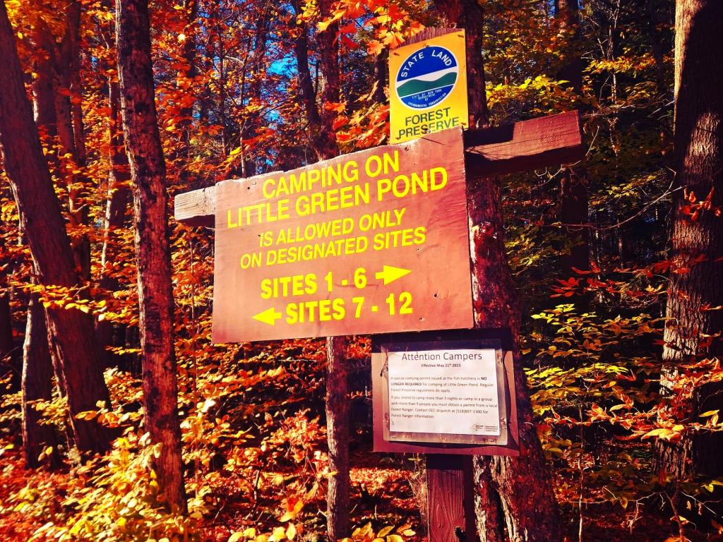 Photo: Little Green Pond Campsite Sign Download a High Resolution JPEG Image of the Little Green Pond Campsite Sign or an Adobe Acrobat Printable PDF of the Little Green Pond Campsite Sign. Little Green Pond Campsite Sign ... Taken on Thursday October 16, 2025 at Saint Regis Canoe Area. More about Saint Regis Canoe Area...Maps and InteractivesSaint Regis MountainHoel PondSaint Regis Portages and CampsitesSt. Regis Mountain TrailSlang And Turtle PondsSaint Regis Pond and Little Long PondSaint Regis PondSaint Regis Canoe Area – USGS 1:24k Topographic Maps IndexLong Pond (St. Regis Canoe Area)Little Green Pond Camping AreaLittle Clear PondLake ClearFloodwood Road Campsites... photos, maps and other content from from Saint Regis Canoe Area. Leave a Reply Cancel replyYour email address will not be published. Required fields are marked *Comment * Name * Email * Website Save my name, email, and website in this browser for the next time I comment. Δ