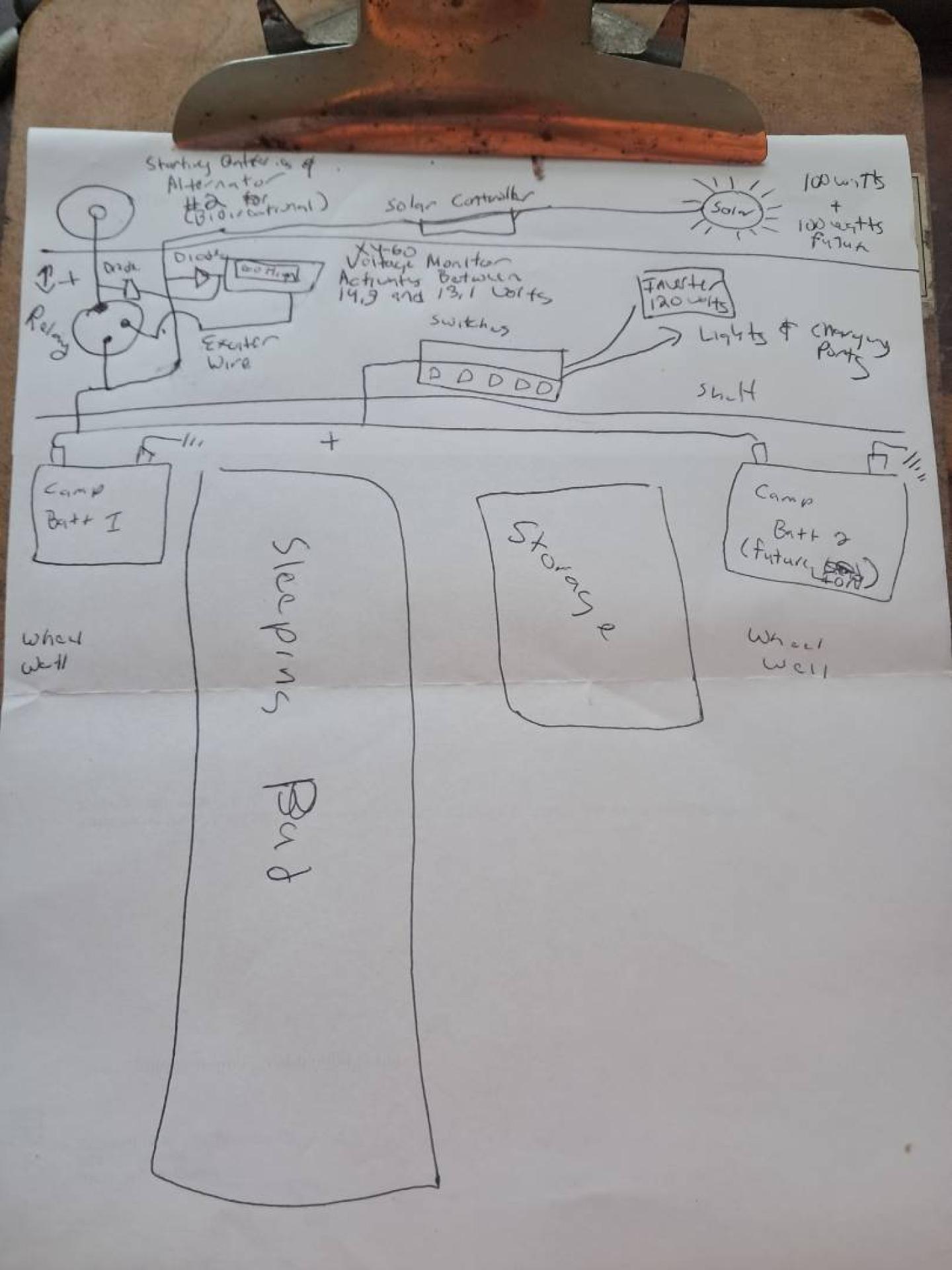 This pretty much the same configuration and components I have things on Big Red, but hopefully with lot less wire and colorful rat nests in conduit because I am mounting everything in the bed and not building it over 15 years as technology and knowledge evolves.